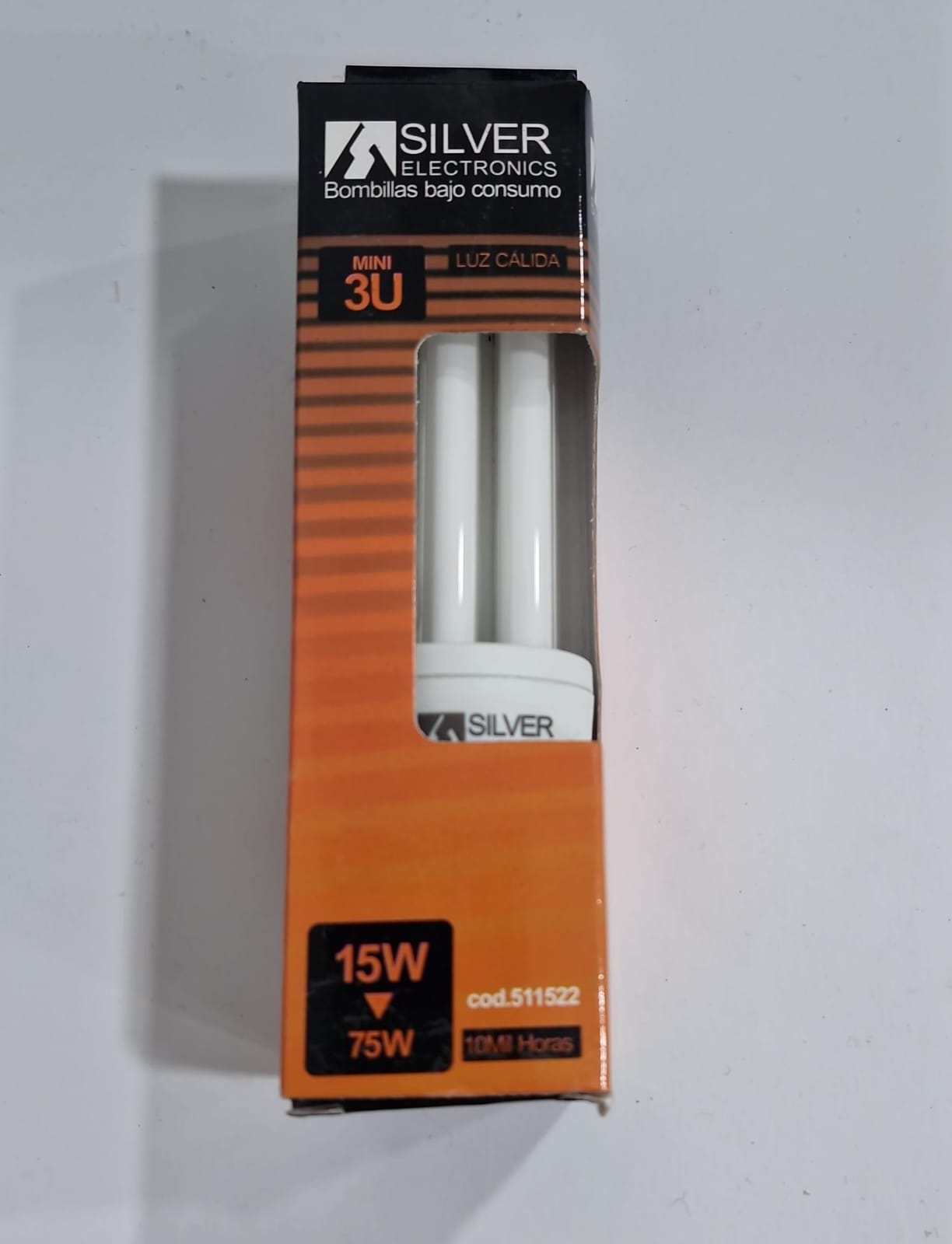 Lote de 15 bombillas Mini 3U de 15 W, equivalentes a 75 W, con casquillo E27. Proporcionan luz cálida 2700 K, flujo luminoso de 800 lm y vida útil aproximada de 10 000 horas. Ideales para iluminación doméstica eficiente y duradera, con un diseño compacto que se adapta a la mayoría de lámparas y luminarias estándar.