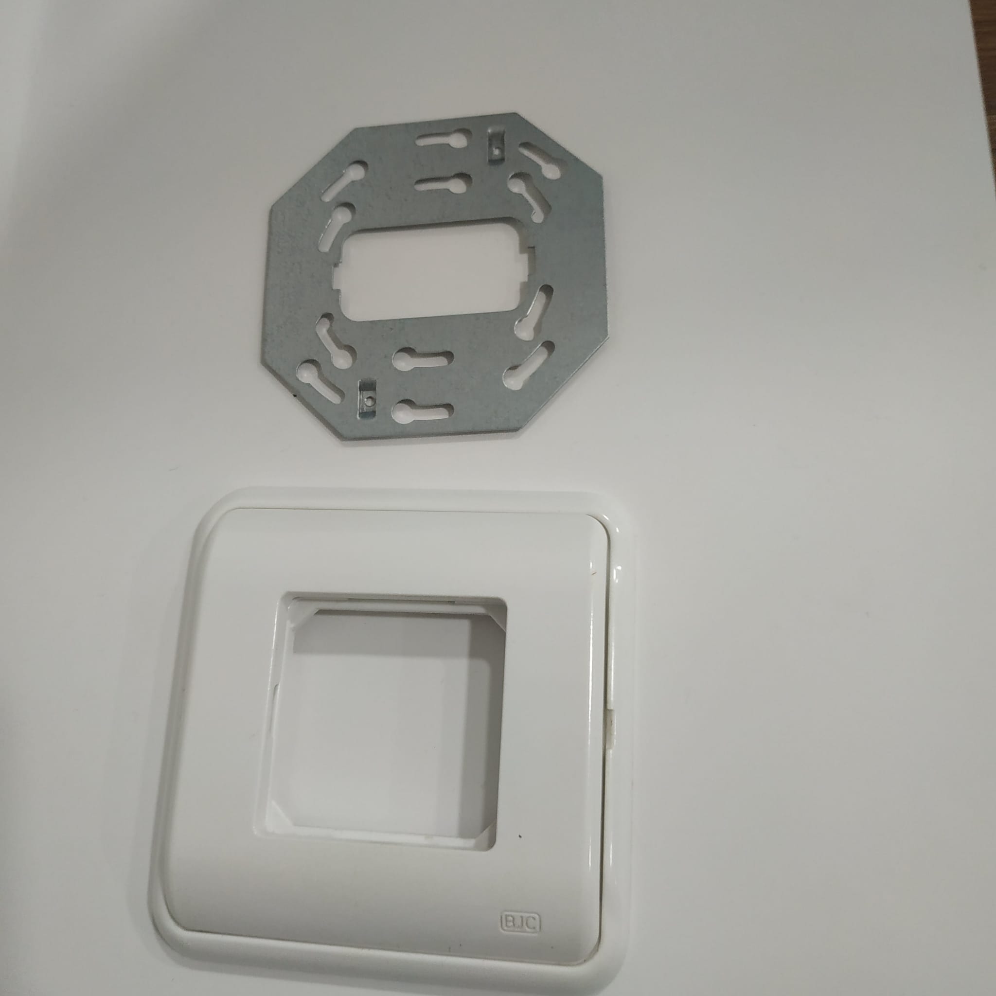 Marco para 2 elementos estrechos de la serie Sol Teide de BJC en color blanco, diseñado para completar instalaciones eléctricas con un acabado sencillo y funcional. Este marco permite montar dos mecanismos estrechos o un mecanismo ancho en instalaciones empotradas estándar y encaja sobre cajas universales con bastidor incluido. Su diseño facilita un montaje rápido junto con los mecanismos y teclas correspondientes, proporcionando un acabado uniforme y de calidad. Fabricado en resina termoestable de alta durabilidad, ofrece resistencia al uso diario y mantiene una estética limpia en cualquier ambiente residencial o comercial. Se ofrece esta unidad con defectos visibles en las imágenes, siendo una opción económica para proyectos donde los desperfectos estéticos no afectan la funcionalidad eléctrica del producto.